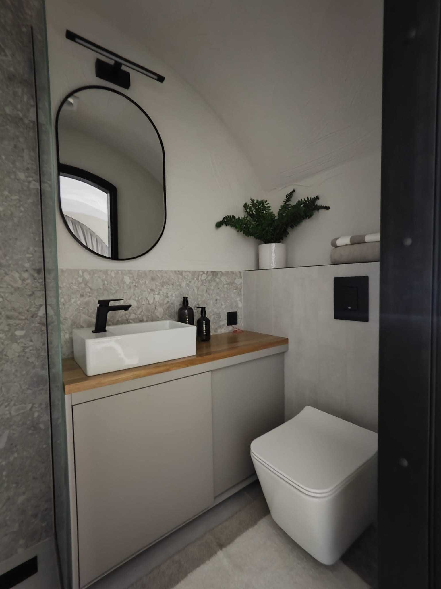 Inbäddat bland enar, ackompanjerat av fågelsång och prytt med hexagonala paneler som glänser när solens strålar dansar över dem – där står vårt Prefab‑hus. Endast 20 m² stort, men fullt av möjligheter. Ett rum utan låga dörröppningar att ducka under och utan bekymmer om en god nattsömn. Ett hem som skänker ro – vare sig du är bortrest, uthärdar en stormig natt, upplever kyliga morgnar eller blickar mot kommande generationer. En fristad och stillhet som inget annat. Upptäck Revonia Prefabs magiska sinnesro här.